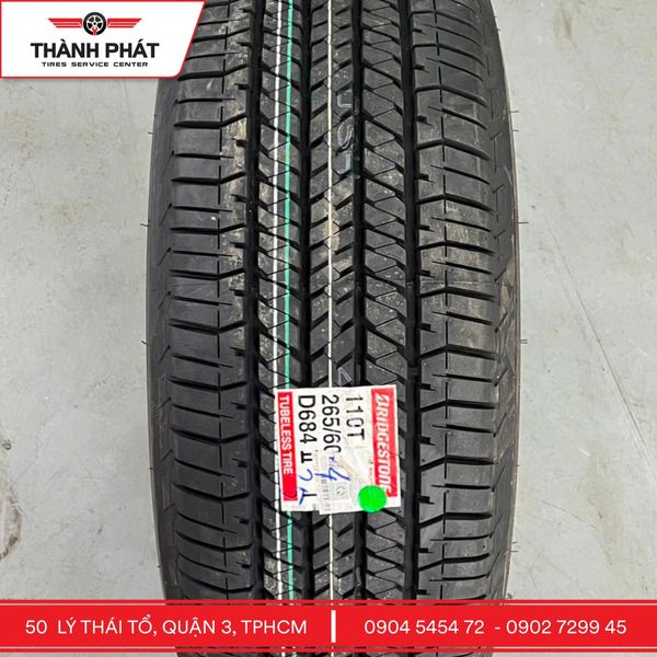 Bridgestone D684 (H/T): thiên về đường nhựa, chạy êm – ổn định cao tốc, thoát nước tốt khi mưa, vẫn đáp ứng được địa hình nhẹ.