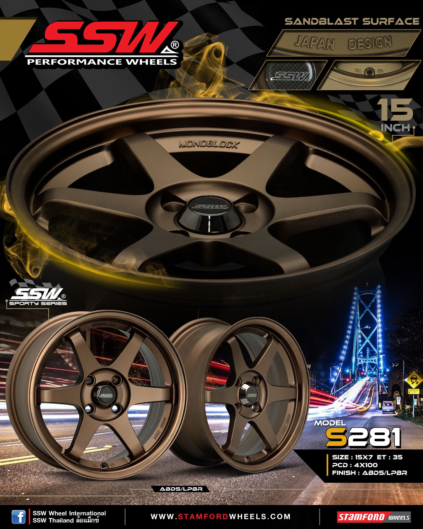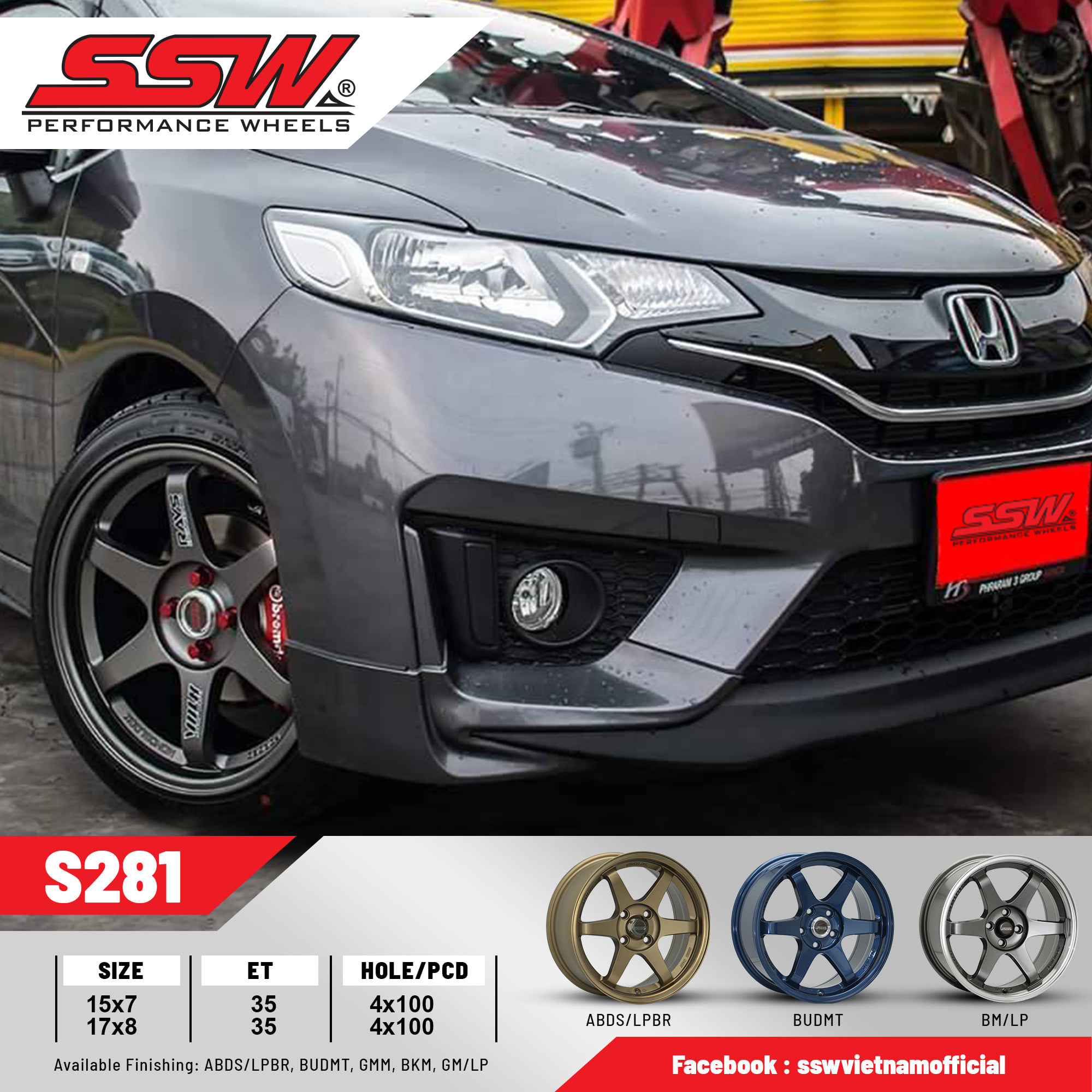 Mâm xe SSW S281 15 inch 4x100 dành cho các dòng xe Kia, Hyundai, Toyota, Mazda, Honda